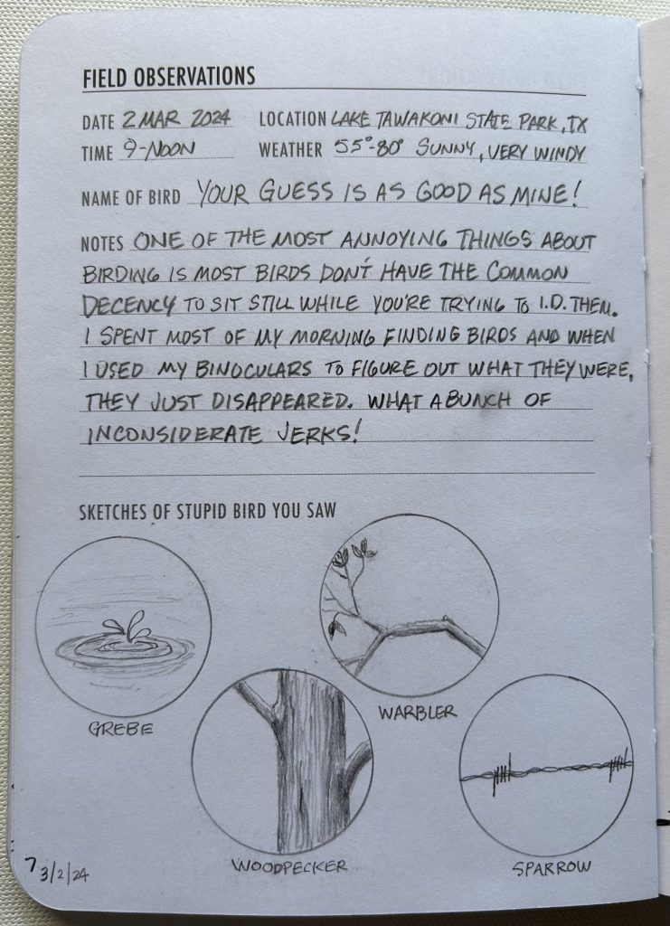 I’m Brian Sanders. I live in the Piney Woods of East Texas. I’ve been a birder for about forty years and an artist for a little longer than that. I like to combine these two and inject a little humor along the way.